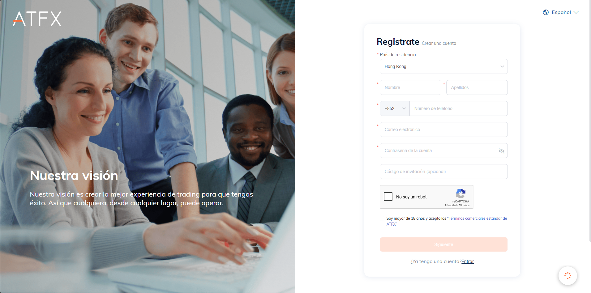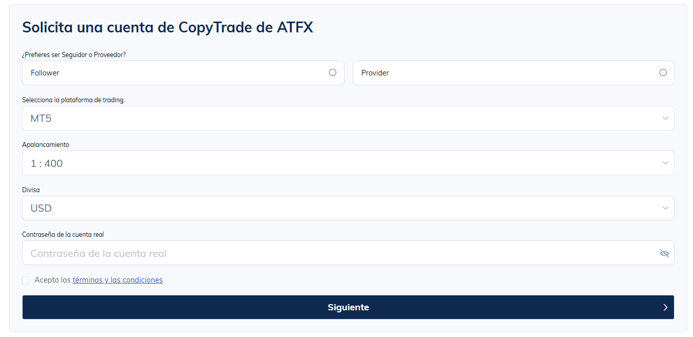 Proceso de Registro en ATFX CopyTrade