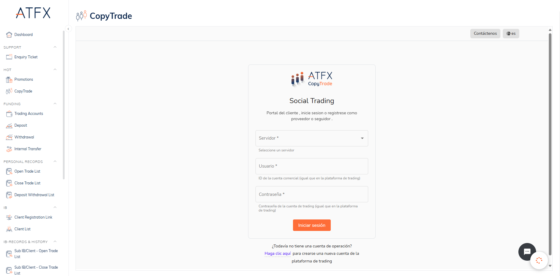 - Será redirigido a la página de inicio de sesión de CopyTrade.